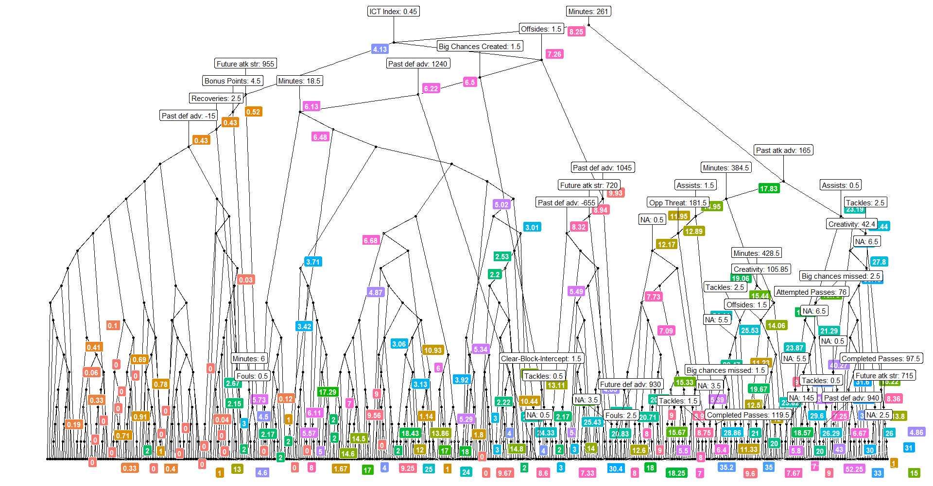 Unpredictability of football aside, a key problem was that I was working with a pretty limited dataset. The FPL API gives high level detail like goals and assists, as well as more detailed variables such as big chances missed, but what you really want is metrics like expected goals and defensive coverage that you have to pay a lot of money for.
