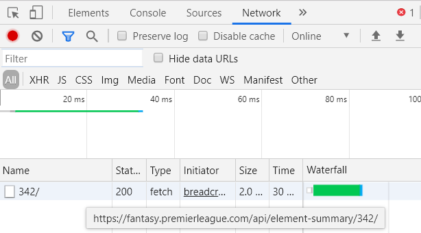 The first thing needed for this task was the data itself. I started this project part way through the season, so there was no complete dataset available. I also needed the data to come from the Fantasy Premier League, as it needed FPL points. Unfortunately there's no publicly disclosed API. However, that doesn't always mean there isn't any API...