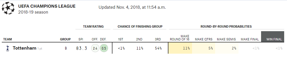 However that very final was played against Tottenham Hotspur, who only a few games into the Champions League campaign 538 predicted had a <1% chance of making it there. It's hard to predict results.