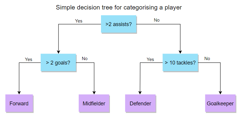 Both of these are based on making decision trees. I've outlined a really simple decision tree below as an example - the ones created by these algorithms are more complex, but its the same fundamental concept.